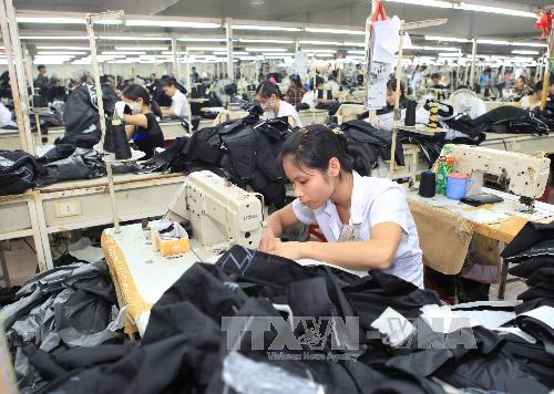 | May áo jacket xuất khẩu. Ảnh: Trần Việt - TTXVN |
