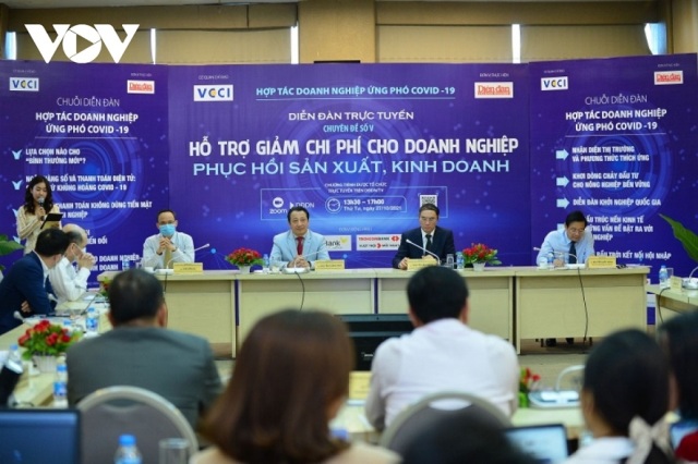 Nhằm tìm biện pháp tháo gỡ khó khăn cho cộng đồng doanh nghiệp bị ảnh hưởng bởi dịch Covid 19, chiều 27/10, tại Hà Nội, Phòng Thương mại và Công nghiệp Việt Nam tổ chức diễn đàn với chủ đề “Hỗ trợ giảm chi phí cho doanh nghiệp phục hồi sản xuất, kinh doanh”.