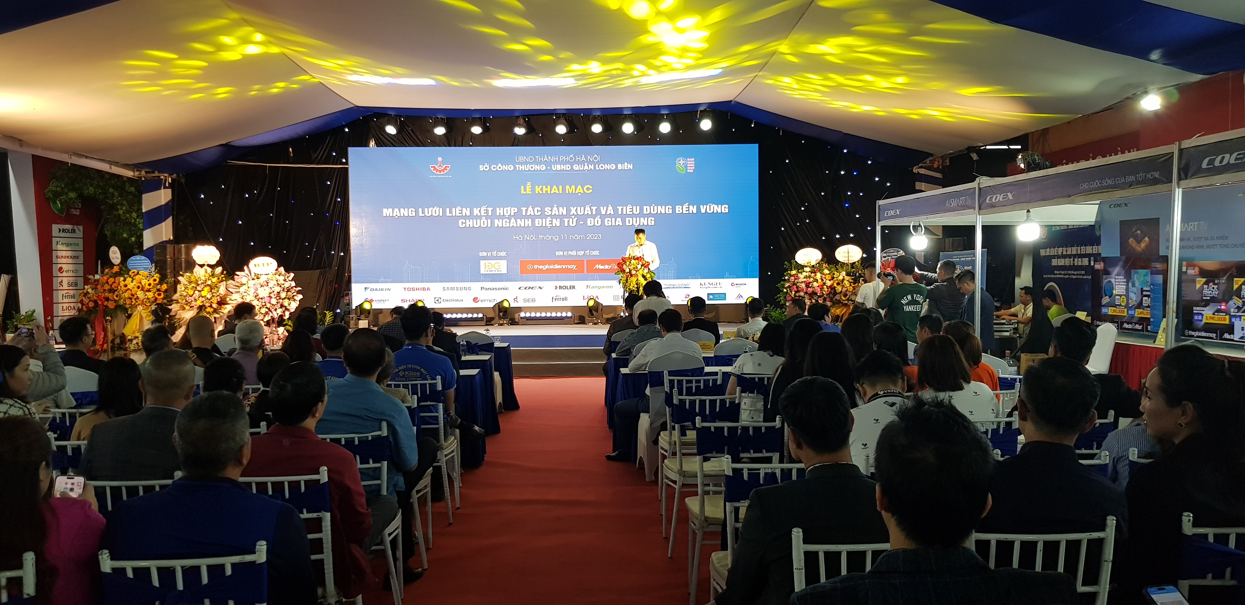 Lễ khai mạc Mạng lưới liên kết hợp tác sản xuất và tiêu dùng bền vững trong chuỗi ngành điện tử, đồ gia dụng diễn ra tối qua (23/11) tại Siêu thị điện máy Mediamart Long Biên (Hà Nội). Sự kiện do Sở Công Thương Hà Nội phối hợp với Ủy ban nhân dân quận Long Biên và Công ty cổ phần MediaMart Việt Nam phố hợp tổ chức kéo dài đến ngày 26/11/2023.