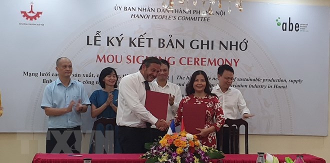 Chiều 23/08, Sở Công Thương Hà Nội và Công ty Advanced Business Events (ABE) - Cộng hòa Pháp ký biên bản ghi nhớ hợp tác về mạng lưới cao cấp sản xuất, cung ứng, tiêu dùng bền vững lĩnh vực ngành công nghiệp hàng không.