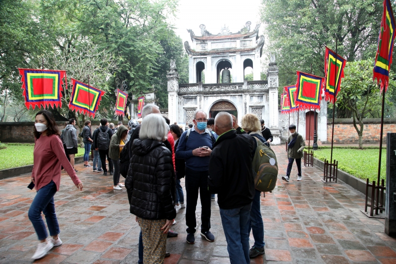Khách du lịch thăm Văn Miếu - Quốc Tử Giám. Ảnh minh họa: baodansinh.vn |