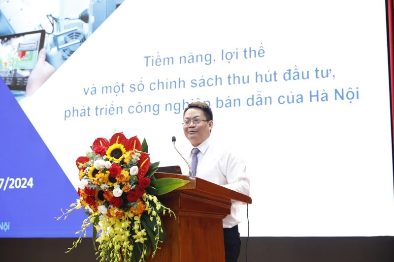 Ông Nguyễn Việt Hùng, Giám đốc Sở Thông tin và Truyền thông Hà Nội, chia sẻ về tiềm năng, lợi thế và một số chính sách thu hút đầu tư, phát triển công nghiệp bán dẫn của Hà Nội. Ảnh: nhandan.vn |