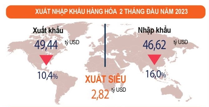 Xuất nhập khẩu hàng hóa 2 tháng đầu năm 2023. Ảnh: Tổng cục Thống kê |