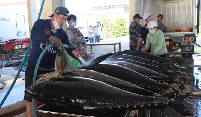 Thu mua cá ngừ đại dương tại cảng Đông Tác, TP Tuy Hòa, tỉnh Phú Yên - Ảnh: Báo Nông nghiệp Việt Nam |