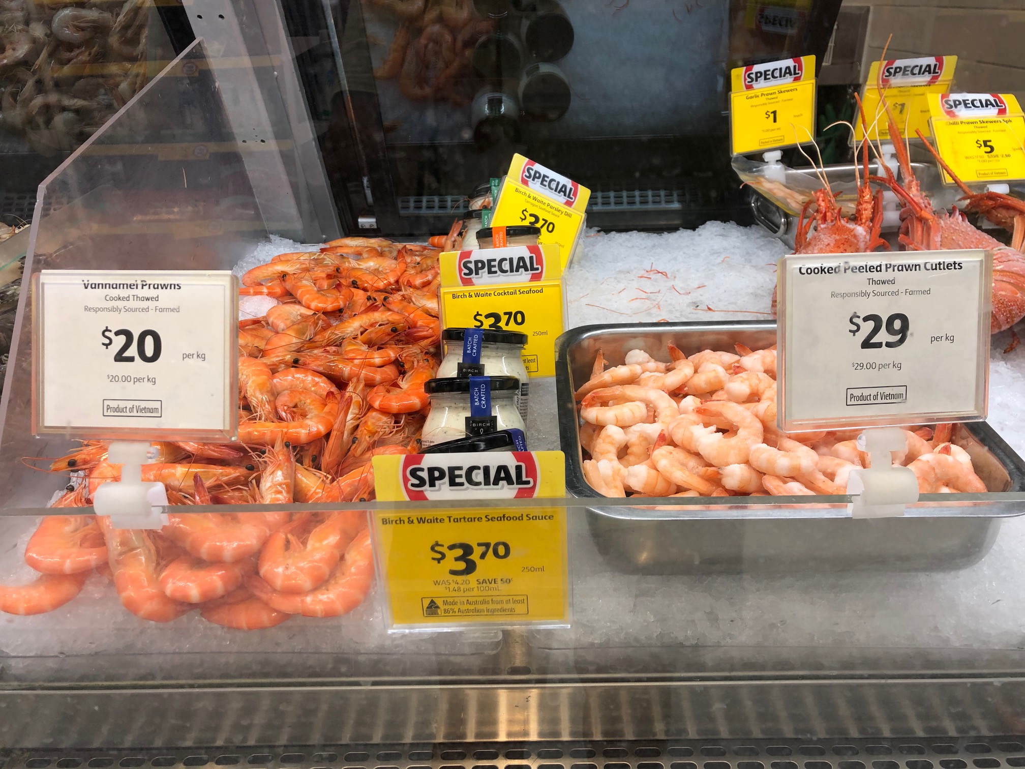 Tôm chín Việt Nam được bán trong hệ thống siêu thị Coles ở Australia. Nguồn: VOV. |