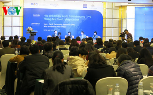 Tại Hội thảo, ông Vũ Tiến Lộc, Chủ tịch VCCI, cho rằng: Tham gia Hiệp định đối tác xuyên Thái Bình Dương (TPP) sẽ có thị trường rộng lớn với 800 triệu dân, chiếm 40% GDP của thế giới và lưu lượng giao dịch hàng hóa chiếm 30% thương mại toàn cầu… Do đó TPP được dự báo sẽ là Hiệp định thương mại tự do tác động lớn nhất tới hoạt động sản xuất kinh doanh của các doanh nghiệp Việt Nam trong tương lai gần. Do đó mỗi doanh nghiệp, tổ chức, cá nhân cần chú ý tìm hiểu về TPP đặc biệt là các cam kết ảnh hưởng đến hoạt động sản xuất kinh doanh của mình: Sắp tới VCCI sẽ phối hợp với Đoàn đàm phán của Chính phủ xây dựng chương trình phổ biến cho cộng đồng doanh nghiệp, cũng như tổ chức các hội thảo về chuyên đề TPP trong cả nước. Thời gian tới, chúng tôi sẽ thiết lập một trung tâm thông tin trực tuyến về TPP và hướng tới biên soạn các sách hướng dẫn cho doanh nghiệp theo từng ngành hàng cụ thể.