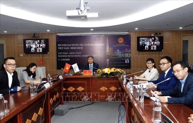 Quang cảnh Hội nghị giao thương trực tuyến doanh nghiệp Việt Nam - Mercosur 2020 đầu cầu Hà Nội. - Ảnh: TTXVN |