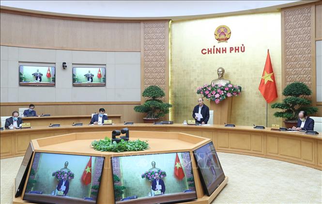 Thủ tướng Nguyễn Xuân Phúc chủ trì Hội nghị chuẩn bị cho Hội nghị trực tuyến của Thủ tướng Chính phủ Chính phủ với doanh nghiệp ngày 13/4/2020 - Ảnh: TTXVN |