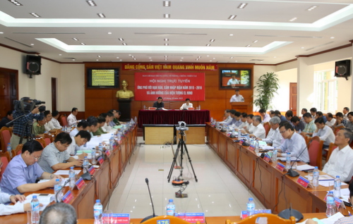 Sáng 31/10, tại đầu cầu Hà Nội, Phó Thủ tướng Chính phủ Hoàng Trung Hải chủ trì hội nghị trực tuyến của Ban chỉ đạo Trung ương về phòng chống thiên tai với các tỉnh, thành phố trên cả nước để ứng phó với hạn hán, xâm nhập mặn 2015-2016 và ảnh hưởng của hiện tượng El Nino.