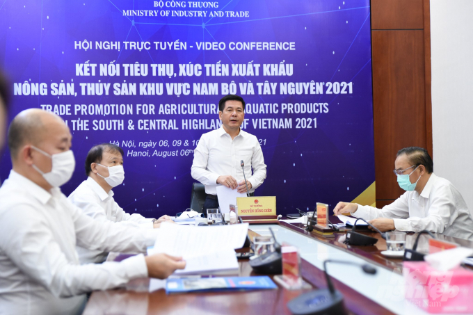 Nhằm kịp thời tháo gỡ khó khăn về tiêu thụ nông sản, thủy sản của các tỉnh khu vực Nam Bộ và Tây Nguyên trong bối cảnh dịch Covid-19 đang diễn biến phức tạp, chiều 06/08, Bộ Công Thương chủ trì tổ chức “Hội nghị trực tuyến kết nối tiêu thụ, xúc tiến xuất khẩu nông sản, thủy sản, sản phẩm chăn nuôi khu vực Nam Bộ và Tây Nguyên 2021”. Hội nghị có sự tham dự của trên 700 đại biểu trong nước và gần 90 đại diện các Thương vụ Việt Nam tại 48 quốc gia, vùng lãnh thổ trên thế giới.