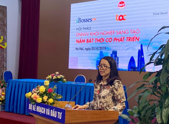 Bà Bùi Thu Thủy, Phó cục trưởng Cục Phát triển doanh nghiệp, Bộ Kế hoạch và Đầu tư phát biểu tại hội thảo.-Ảnh QĐND |