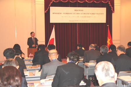 Tại Hội thảo, Chủ tịch Ủy ban nhân dân tỉnh Bình Định Hồ Quốc Dũng giới thiệu và nêu bật những tiềm năng và thế mạnh của tỉnh Bình Định trong sản xuất công nghiệp, chế biến thủy sản, dịch vụ cảng biển và tài nguyên khoáng sản và du lịch. Đồng thời, ông cũng nhấn mạnh những chính sách khuyến khích và ưu đãi về đầu tư, cải cách hành chính nhằm tạo điều kiện thuận lợi cho các nhà đầu tư nước ngoài, đặc biệt là các doanh nghiệp Nhật Bản.