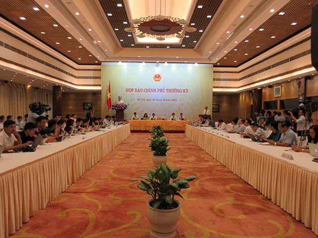 Chiều 01/10, tại Hà Nội, diễn ra phiên họp báo Chính phủ thường kỳ tháng 9/2018 dưới sự chủ trì của Bộ trưởng, Chủ nhiệm Văn phòng Chính phủ, Người phát ngôn của Chính phủ Mai Tiến Dũng.
