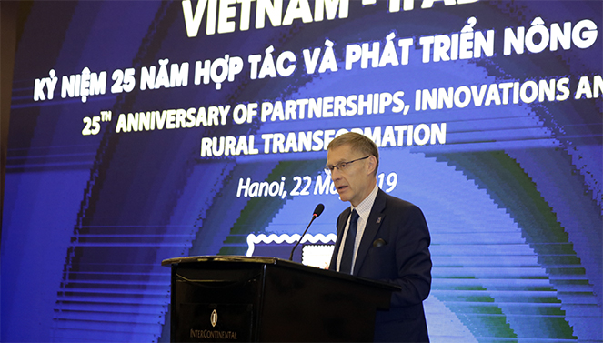 Ông Donal Brown, Phó Chủ tịch của IFAD đánh giá, chỉ trong khoảng thời gian ngắn, Việt Nam đã có bước nhảy vọt ấn tượng về chuyển đổi kinh tế: “25 qua, tôi nhìn thấy rất nhiều thay đổi, chuyển biến tích cực tại Việt Nam, đặc biệt trong lĩnh vực xóa đói giảm nghèo.Tỷ lệ người nghèo giảm đáng kinh ngạc từ 60% nay chỉ còn 10%. IFAD rất tự hào khi đóng góp vào kết quả đó. Song tôi nghĩ rằng, chỉ riêng IFAD và chính phủ Việt Nam thì không thể tạo nên thành công nếu không có nỗ lực của các tổ chức đối tác, doanh nghiêp, đặc biệt của những nông dân điển hình. Họ là những tác nhân quan trọng, luôn đồng hành cùng IFAD và chúng tôi biết ơn vì điều đó.”