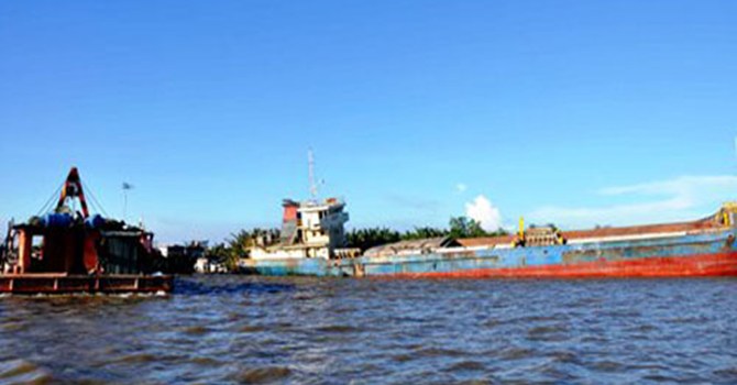 Dự án đầu tư xây dựng luồng cho tàu biển trọng tải lớn vào sông Hậu. Ảnh: Trọng Minh