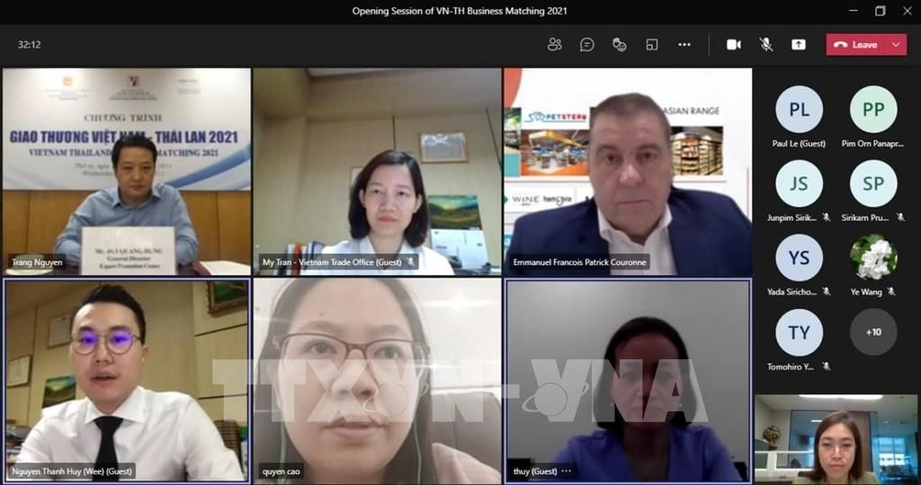 Quang cảnh chương trình kết nối kinh doanh Việt Nam-Thái Lan theo hình thức trực tuyến. Ảnh: TTXVN phát |