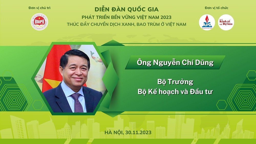 Bộ trưởng Bộ Kế hoạch và Đầu tư Nguyễn Chí Dũng chủ trì Diễn đàn quốc gia về Phát triển bền vững Việt Nam 2023 với chủ đề “Thúc đẩy chuyển dịch xanh, bao trùm ở Việt Nam”. Ảnh: kinhtedubao.vn |