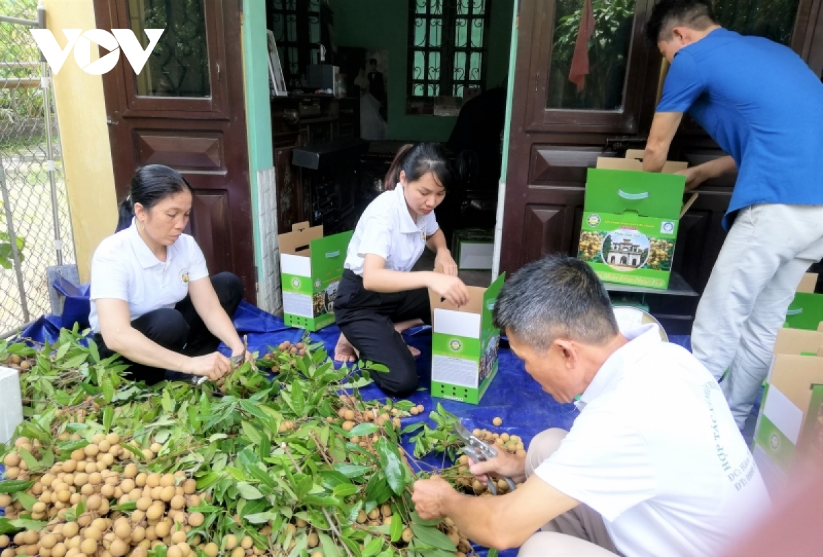 Xã viên hợp tác xã nhãn Miền Thiết, huyện Khoái Châu, đóng hộp nhãn cho doanh nghiệp. Ảnh: VOV |