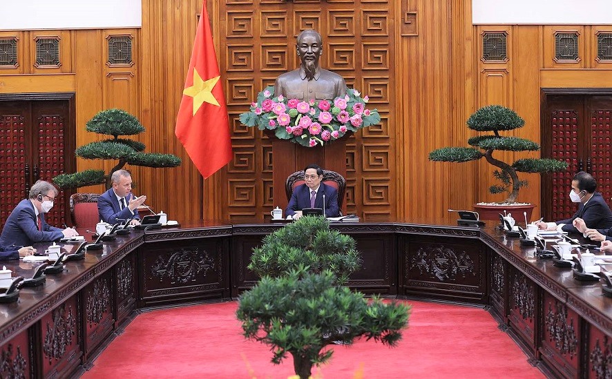 Thủ tướng Phạm Minh Chính tiếp Đại sứ Liên hiệp Vương quốc Anh và Bắc Ireland tại Việt Nam Gareth Ward. Ảnh: Dương Giang/TTXVN |