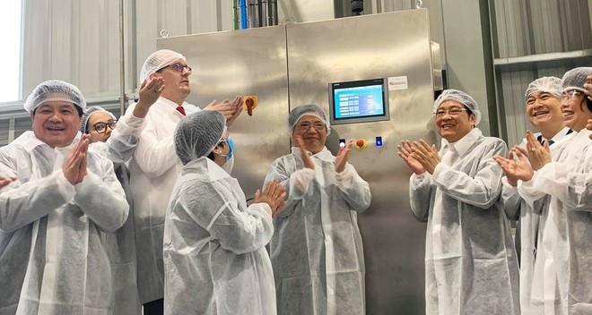 Nhấn nút khởi động dây chuyền chế biến tại nhà máy - Ảnh: Phan Hậu/VTC |