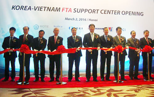 Nhằm tăng cường sự hỗ trợ cho doanh nghiệp hai nước sau khi Hiệp định Thương mại Tự do (FTA) giữa Hàn Quốc và Việt Nam chính thức có hiệu lực từ ngày 20/12/2015, với vai trò là cơ quan xúc tiến thương mại và đầu tư Hàn Quốc tại Việt Nam, ngày 2/3, Văn phòng KOTRA tại Hà Nội tổ chức Lễ khánh thành Trung tâm Hỗ trợ Vận dụng FTA Hàn-Việt.
