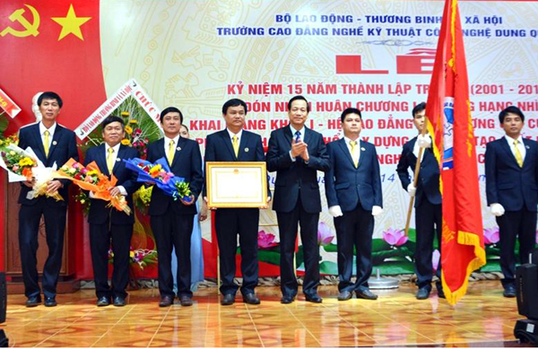 | Trường Cao đẳng nghề kỹ thuật công nghệ Dung Quất đón nhận Huân chương Lao động hạng Nhì. Ảnh: baodautu |