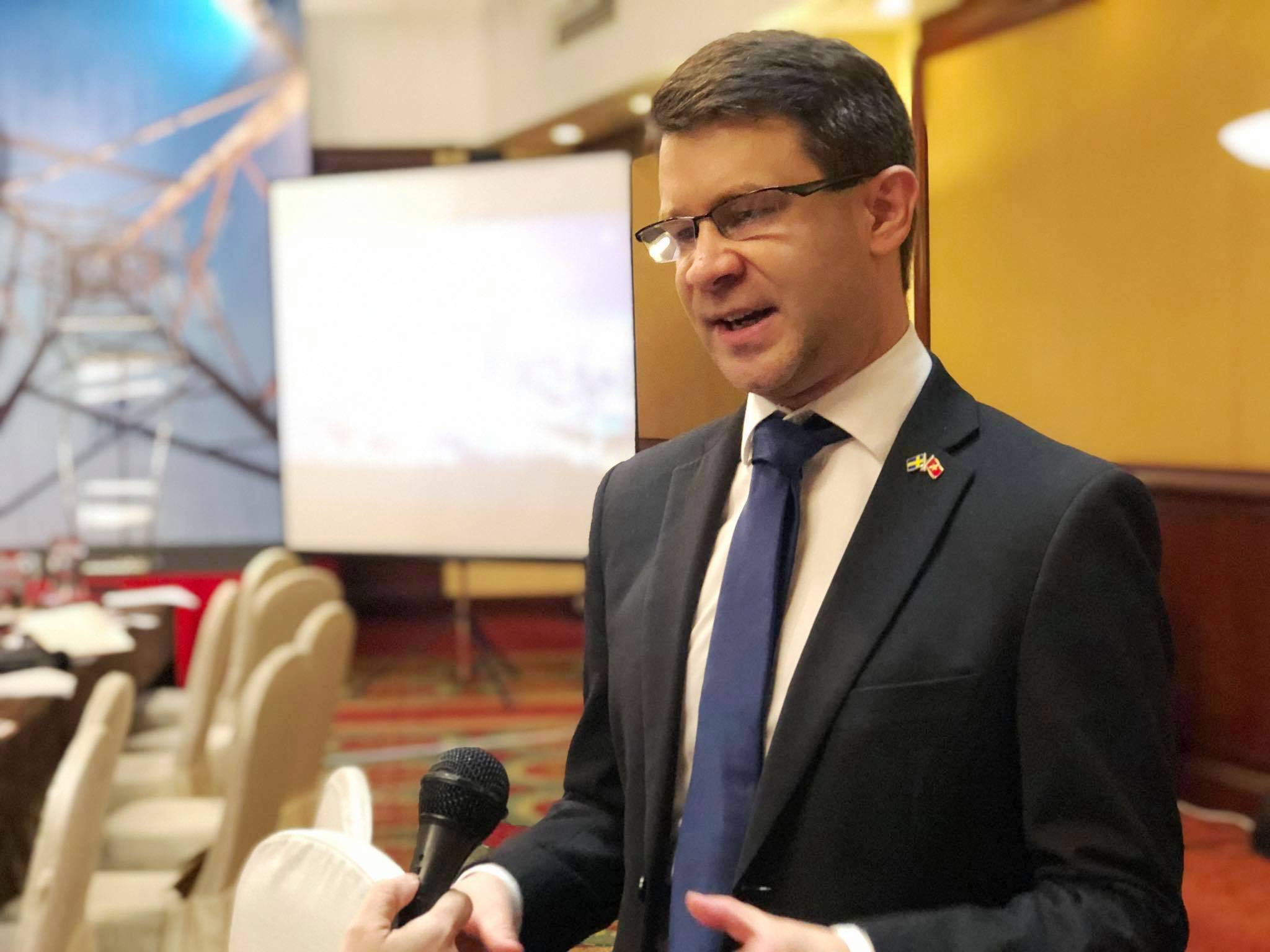 Tham tán thương mại Thụy Điển tại Việt Nam Bjorm Savlid cho biết các công ty Thụy Điển rất háo hức đầu tư vào lĩnh vực năng lượng tiềm năng Việt Nam. - Ảnh Hà Linh |