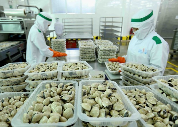 Chế biến ngao xuất khẩu sang EU, Anh, Nhật Bản, Mỹ, Hàn Quốc. Ảnh: TTXVN |