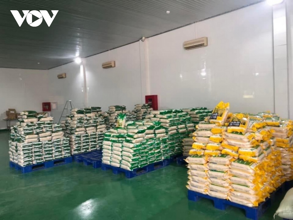 Gạo hữu cơ Quảng Trị được bảo quản tại kho. |