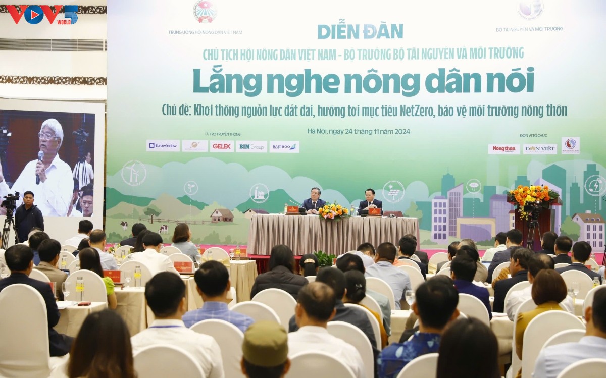 Với chủ đề "Khơi thông nguồn lực đất đai, hướng tới mục tiêu NetZero, bảo vệ môi trường nông nghiệp, nông thôn", Diễn đàn này là lần đầu tiên Chủ tịch Hội Nông dân Việt Nam và Bộ trưởng Bộ Tài nguyên và Môi trường cùng lắng nghe tâm tư, nguyện vọng của nông dân.
