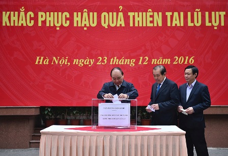 Sáng 23/12, Thủ tướng Chính phủ Nguyễn Xuân Phúc và các Phó Thủ tướng Chính phủ: Trương Hòa Bình, Vương Đình Huệ, Vũ Đức Đam, Trịnh Đình Dũng tham gia quyên góp ủng hộ đồng bào Nam Trung bộ bị thiệt hại do lũ lụt. Đây là lần quyên góp thứ hai ủng hộ đồng bào vùng bị ảnh hưởng lũ lụt do Văn phòng Chính phủ tổ chức sau lần quyên góp ngày 18/10 (với số tiền gần 400 triệu đồng).