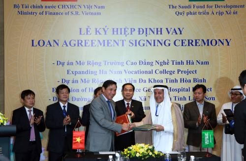 Ông Trương Chí Trung, Thứ trưởng Bộ Tài chính Việt Nam và ông Yousef I Al Bassam, Phó Chủ tịch kiêm Tổng Giám đốc Quỹ Phát triển Ả Rập Xê Út (SFD), ký các Hiệp định vay vốn Quỹ SFD cho Dự án Đường đến trung tâm xã Tân Yên của tỉnh Lạng Sơn, Dự án Mở rộng bệnh viện đa khoa tỉnh Hòa Bình và Dự án Mở rộng trường cao đẳng nghề tỉnh Hà Nam.