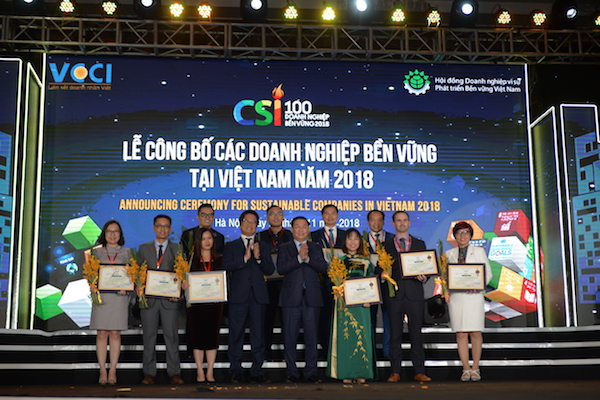 Tại buổi lễ, Ban Tổ chức biểu dương 100 doanh nghiệp bền vững, trong đó có Top 10 doanh nghiệp bền vững trong lĩnh vực sản xuất, Top 10 doanh nghiệp bền vững trong lĩnh vực thương mại – dịch vụ. Đặc biệt, những doanh nghiệp nằm trong Top 10 Doanh nghiệp bền vững trong 03 năm liên tiếp (2016 – 2017 – 2018) cũng được biểu dương.