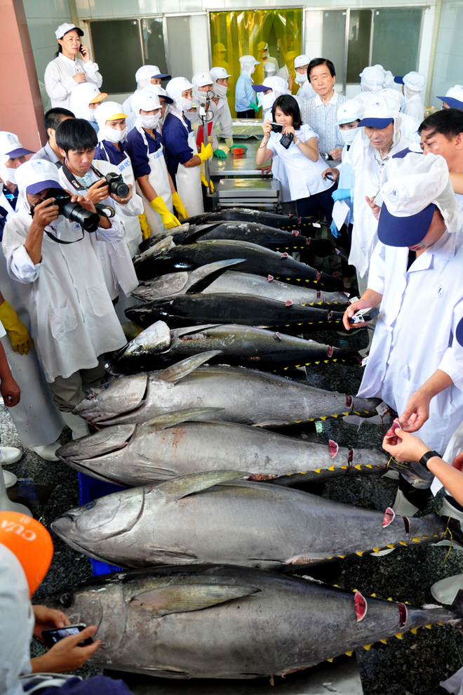 (VOV5) - Theo bà Cao Thị Kim Lan, Giám đốc Công ty cổ phần thủy sản Bình Định, sáng nay (8/8), lô hàng 9 con cá ngừ đại dương đầu tiên của Công ty thu mua xuất sang thị trường Nhật Bản đã được bán đấu giá tại chợ cá Trung tâm bán đấu giá thành phố Osaka với giá bình quân từ 200.000 đồng đến 240.000 đồng/kg.