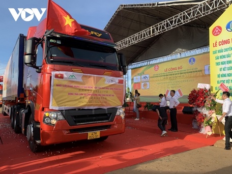 Chuyến hàng xuất khẩu sầu riêng chính ngạch đầu tiên của Việt Nam. Ảnh: Công Bắc/ VOV |