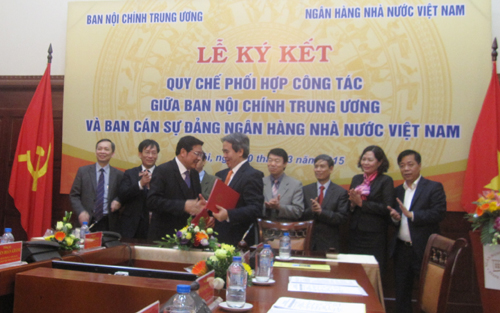 (VOV5)- Chiều 10/3, tại Hà Nội, Ban Nội chính Trung ương và Ban Cán sự đảng Ngân hàng Nhà nước Việt Nam, ký quy chế phối hợp công tác nhằm góp phần nâng cao hiệu quả công tác phòng ngừa tham nhũng và tham mưu, chỉ đạo xử lý các vụ việc có dấu hiệu vi phạm pháp luật nghiêm trọng thuộc lĩnh vực tiền tệ và hoạt động ngân hàng.