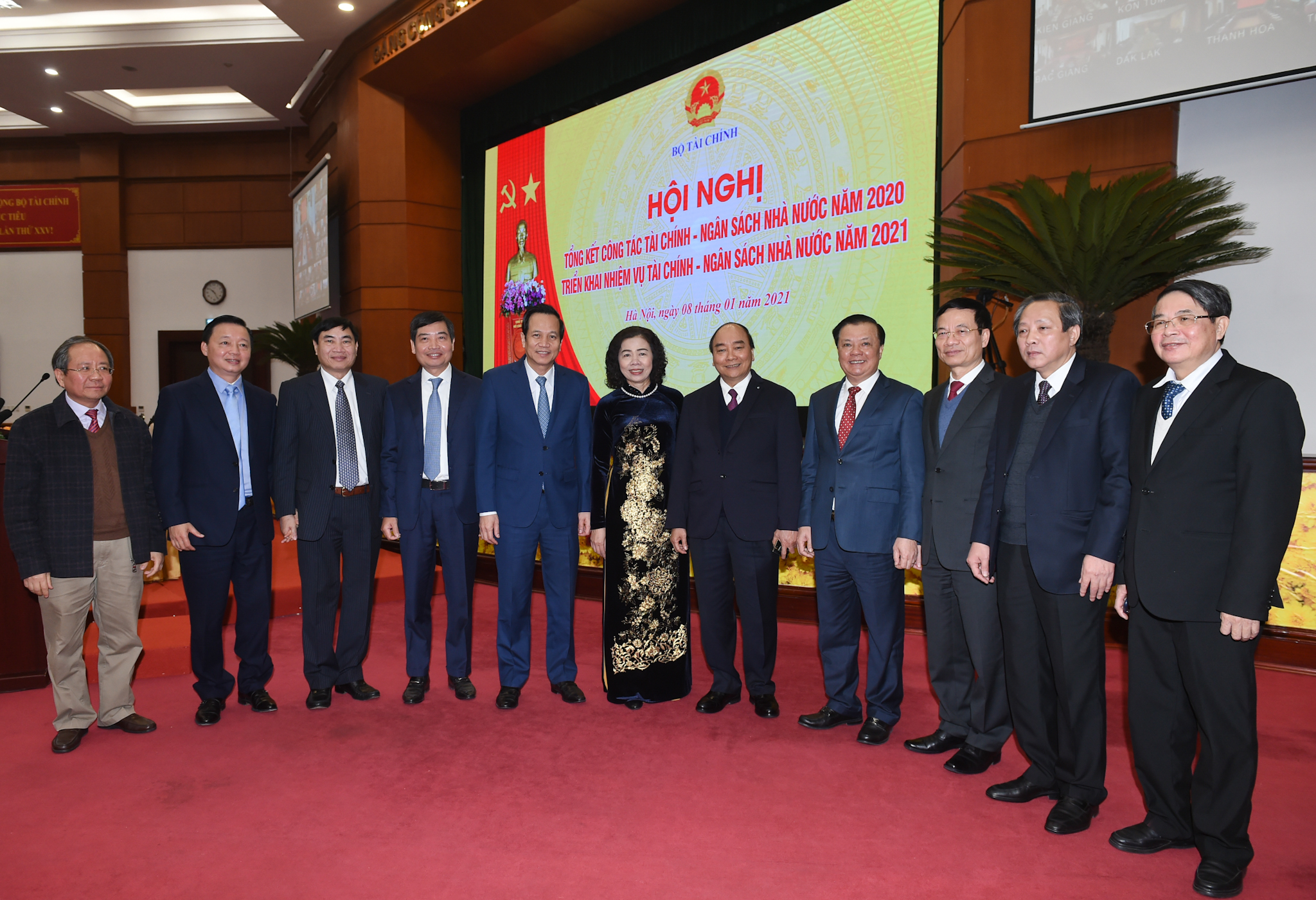 Phát biểu tại hội nghị, Thủ tướng Nguyễn Xuân Phúc chúc mừng Ngành Tài chính đã hoàn thành xuất sắc nhiệm vụ tài chính, thu chi ngân sách Nhà nước năm 2020 trong bối cảnh tình hình trong nước và thế giới có nhiều biến động và diễn biến khó lường, góp phần tích cực cùng Chính phủ thực hiện thành công “nhiệm vụ kép” - vừa phòng chống dịch bệnh, vừa duy trì phục hồi và phát triển các hoạt động kinh tế - xã hội, đảm bảo đời sống nhân dân: "Ngành tài chính đã thực hiện tốt, thực hiện xuất sắc nhiệm vụ tài chính ngân sách nhà nước trong bối cảnh khó khăn do đại dịch Covid-19, chủ động tham mưu ban hành nhiều cơ chế chính sách ứng phó với đại dịch, khắc phục thiên tai, ổn định sản xuất kinh doanh, thúc đẩy giải ngân vốn đầu tư công, hỗ trợ nền kinh tế, triển khai kịp thời nhiều giải pháp, linh hoạt như miễn, giảm, giãn thuế, phí và lệ phí, hỗ trợ kịp thời cho doanh nghiệp".