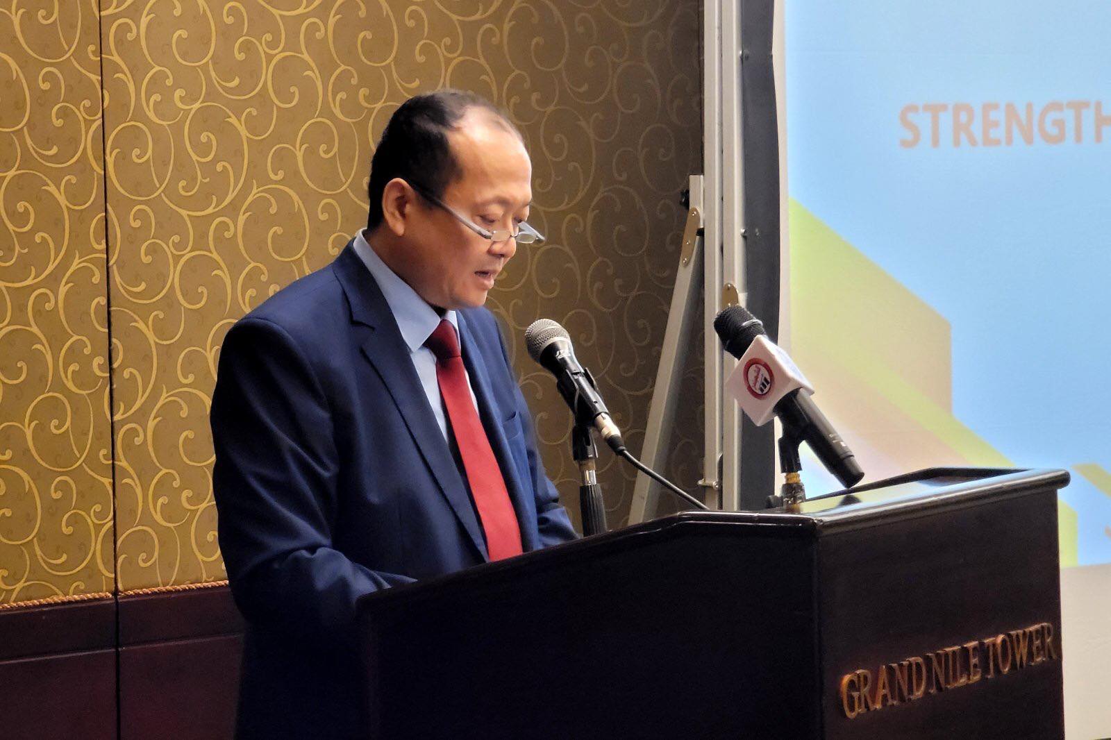 Đại sứ Việt Nam tại Ai Cập Nguyễn Huy Dũng phát biểu tại hội thảo. Ảnh: TTXVN |