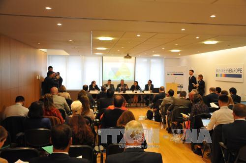 Phát biểu tại hội thảo, Đại sứ Việt Nam tại Vương quốc Bỉ Vương Thừa Phong đánh giá sự ủng hộ của cộng đồng doanh nghiệp châu Âu đối với EVFTA là rất quan trọng. Đại sứ nhấn mạnh trong bối cảnh thế giới đổi thay nhanh chóng, yếu tố thời gian chính là lợi thế nên các bên cần hết sức nỗ lực nhằm hiện thực hóa và sớm đưa Hiệp định Thương mại Tự do Việt Nam-EU đi vào cuộc sống. Trưởng đoàn đàm phán của EU, ông Mauro Petriccione cho biết trong Thông điệp liên minh sắp tới của Chủ tịch EC Jean-Claude Junker, các hiệp định tự do thương mại sẽ có một vị trí rất quan trọng.