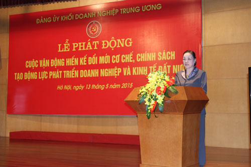 Phát biểu tại lễ phát động, Bí thư Trung ương Đảng, Trưởng Ban Dân vận Trung ương Hà Thị Khiết đề nghị: Đảng uỷ khối doanh nghiệp Trung ương và các đảng uỷ trực thuộc cần có kế hoạch triển khai chu đáo, phát động cán bộ, Đảng viên, người lao động trong các doanh nghiệp, từ kinh nghiệm thực tiễn tích cực tham gia hiến kế, phối hợp chặt chẽ với các ngành, đoàn thể để vận động những người có tâm huyết với sự phát triển kinh tế của đất nước./.