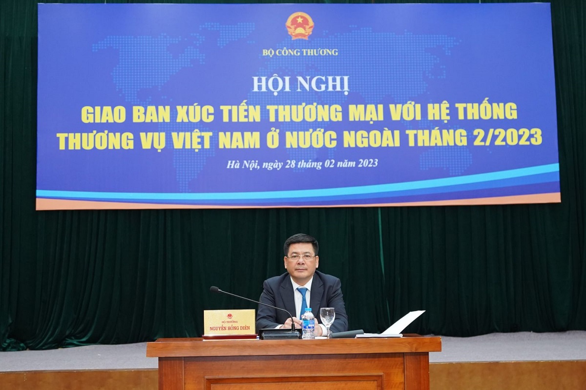 Chủ trị Hội nghị giao ban xúc tiến thương mại với hệ thống Thương vụ Việt Nam ở nước ngoài tháng 2/2023, diễn ra ngày 28/2, tại Hà Nội, Bộ trưởng Bộ Công Thương Nguyễn Hồng Diên cho biết: 2 tháng đầu năm, tổng kim ngạch xuất, nhập khẩu hàng hóa của Việt Nam đạt hơn 96 tỷ USD và cán cân thương mại tiếp tục có xuất siêu hơn 2,8 tỷ USD.