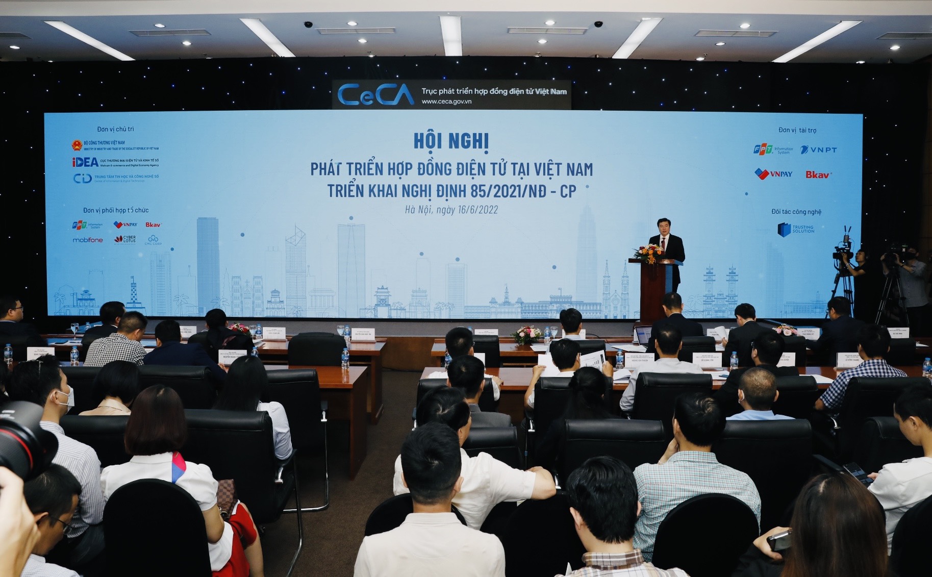 Sáng 16/6, Cục Thương mại điện tử và Kinh tế số, Bộ Công thương tổ chức Hội nghị “Phát triển hợp đồng điện tử tại Việt Nam – Triển khai Nghị định của Chính phủ”, ra mắt “Trục phát triển hợp đồng điện tử Việt Nam”; đồng thời thực hiện lễ ký kết với các đơn vị, doanh nghiệp liên quan, nhằm thúc đẩy hoạt động này.