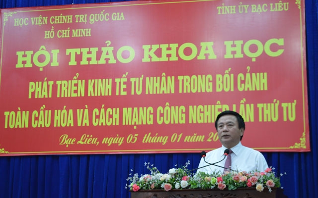 Ngày 5/1, tại thành phố Bạc Liêu, Học viện Chính trị quốc gia Hồ Chí Minh phối hợp với Tỉnh ủy Bạc Liêu tổ chức Hội thảo khoa học cấp quốc gia với chủ đề “Phát triển kinh tế tư nhân trong bối cảnh toàn cầu hóa và cách mạng công nghiệp lần thứ 4”.