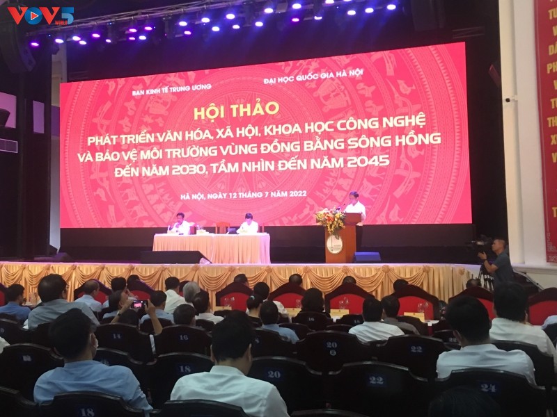 Hội thảo “Phát triển văn hóa, xã hội, khoa học công nghệ và bảo vệ môi trường vùng đồng bằng sông Hồng đến năm 2030, tầm nhìn đến năm 2045”. Ảnh: VOV |