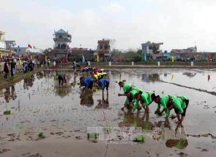 | Ảnh: Thi cấy “Ngày hội xuống đồng- xây dựng nông thôn mới” Xuân Đinh Dậu 2017. Ảnh: TTXVN |