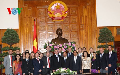 Phó Thủ tướng Nguyễn Xuân Phúc chụp ảnh lưu niệm với đại diện doanh nghiệp Hoa Kỳ tại Singapore.