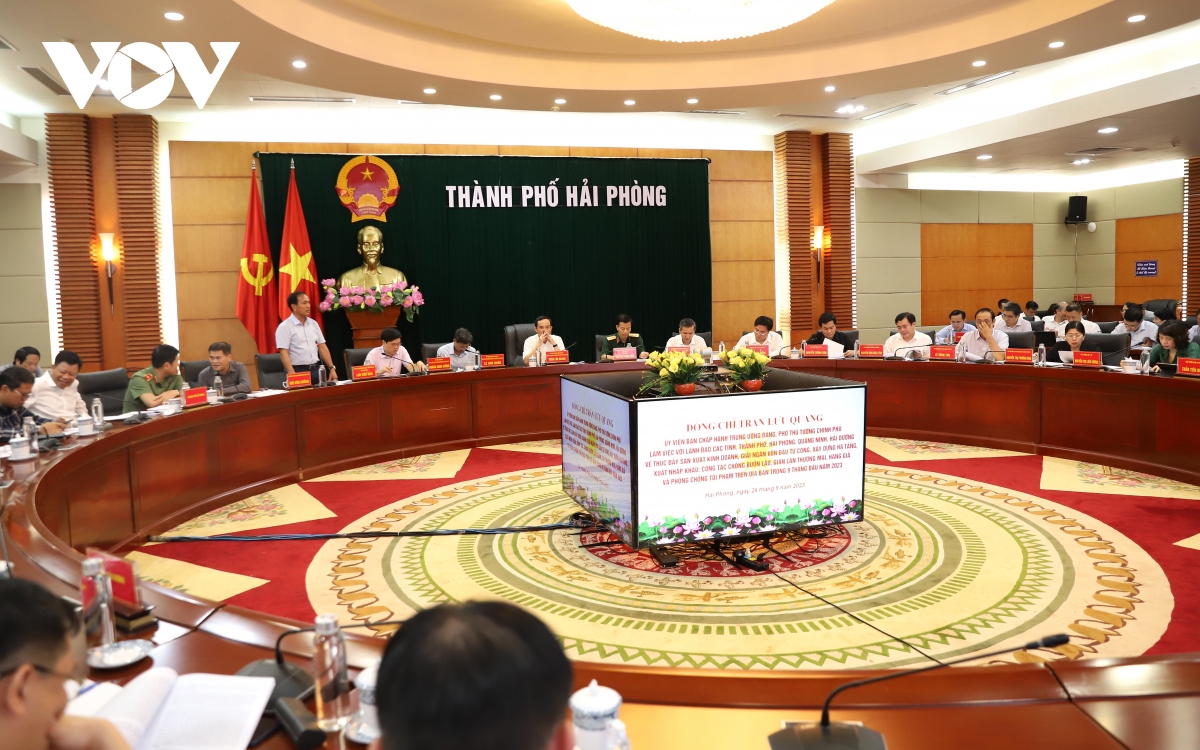 Phó Thủ tướng Trần Lưu Quang làm việc với Hải Phòng, Quảng Ninh, Hải Dương. Ảnh: VOV |