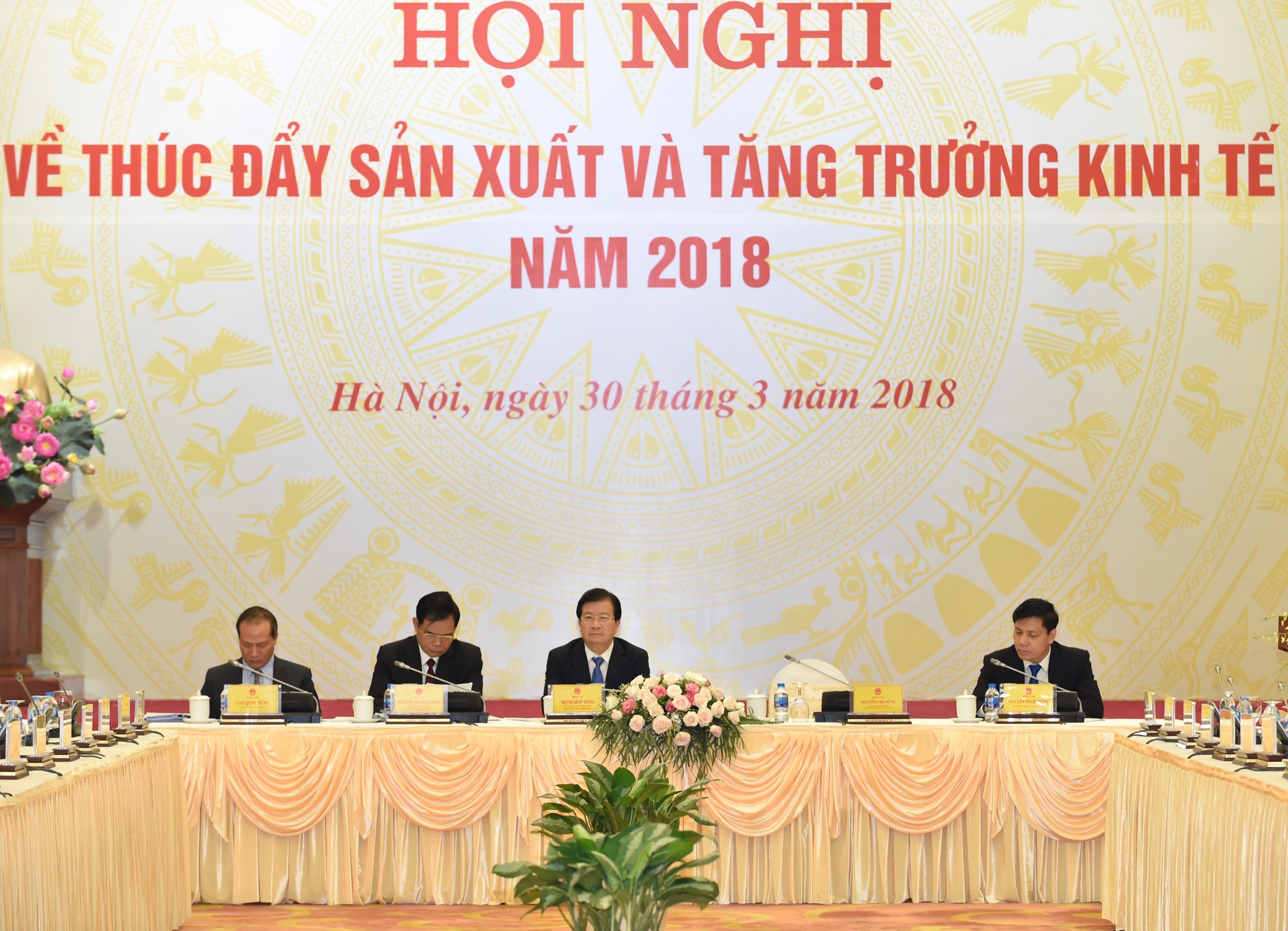 Sáng 30/3, tại Hà Nội. Chính phủ tổ chức hội nghị về thúc đẩy sản xuất và tăng trưởng kinh tế năm 2018. Phó Thủ tướng Chính phủ Trịnh Đình Dũng chủ trì hội nghị.