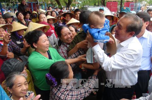 | Phó Thủ tướng Trương Hòa Bình gặp gỡ bà con vùng biển Cảnh Dương, Quảng Bình (Ảnh: Đức Thọ - TTXVN) |