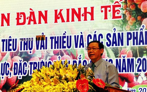 Phát biểu tại diễn đàn, Phó Thủ tướng Vương Đình Huệ khẳng định diễn đàn là sự kiện quan trọng được tổ chức vào thời điểm chuẩn bị vụ thu hoạch chính của vải thiều góp phần thúc đẩy tiêu thụ vải thiều cho nông dân, góp phần xóa đói, giảm nghèo, phát triển kinh tế bền vững. Đồng thời lưu ý, trước mắt, tỉnh cần tập trung công tác hậu cần hỗ trợ tiêu thụ vải thiều. Thường xuyên phối hợp với các tỉnh, thành phố cửa khẩu giáp biên để kết nối cung cầu, chào hàng các doanh nghiệp, thương nhân đến đàm phán, tiêu thụ vải thiều: “Các sản phẩm nông sản đến tận tay người tiêu dùng sớm chừng nào thì cả người bán và người tiêu dùng đều có lợi. Đề nghị tỉnh Bắc Giang quan tâm hơn nữa đến công tác quy hoạch vùng, bám sát nhu cầu của thị trường, tránh phát triển theo phong trào. Cùng với đó quan tâm xây dựng phát triển thương hiệu, tem nhãn, bao bì đóng gói sản phẩm hàng hóa theo các tiêu chuẩn và quy chuẩn đáp ứng yêu cầu của các thị trường. Tại diễn đàn này, tôi xin khẳng định lại là năm nay vải thiều Bắc Giang "được mùa được giá"; vải thiều Thanh Hà "được mùa được giá " là do chúng ta làm tốt công tác tiêu thụ.”